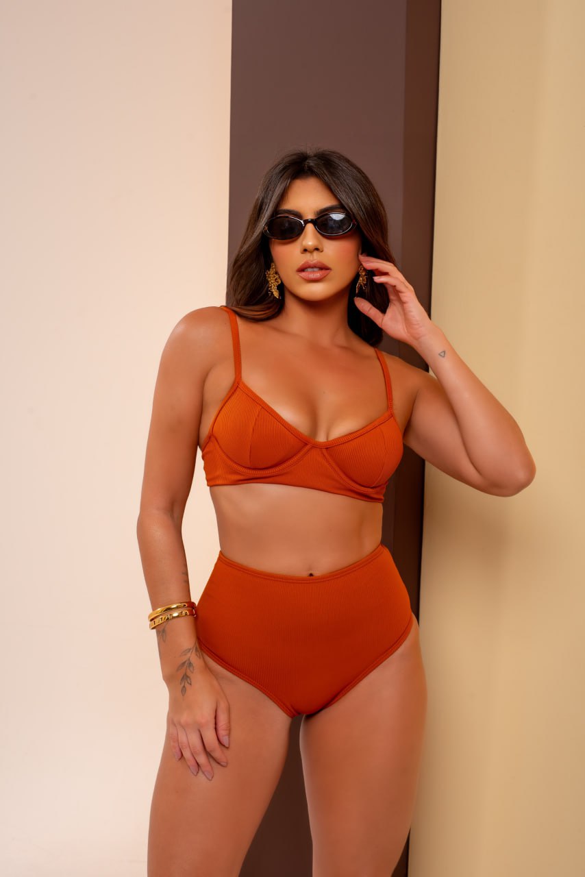 O top estruturado com aro, bojo removível e com alças ajustáveis. A parte inferior em modelo hot pant onde modela a cintura com o charme vintage e conforto, onde uni o glamour e segurança.